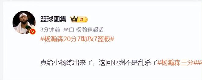 博主:杨瀚森真练出来了,他这个水平回亚洲不是乱杀吗?(世预赛中国男篮连败,如果有小杨会是另一番光景了)