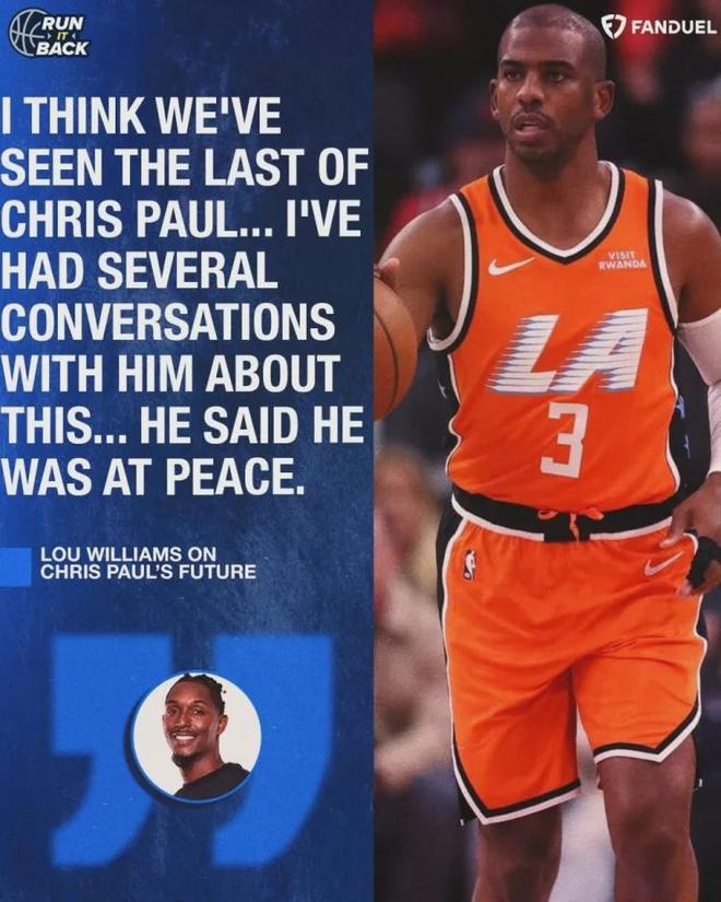前NBA球员路威也说了,保罗已打完生涯最后一战,他今夏休赛期选择加盟快船就是因为可以陪伴家庭,其不想再次离开洛杉矶。