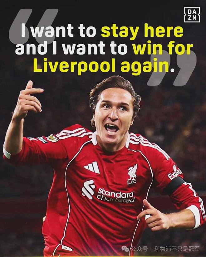 基耶萨还感谢了利物浦球迷对他的支持,并表示自己可以为利物浦贡献更多领导力。